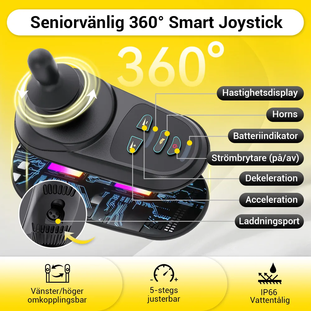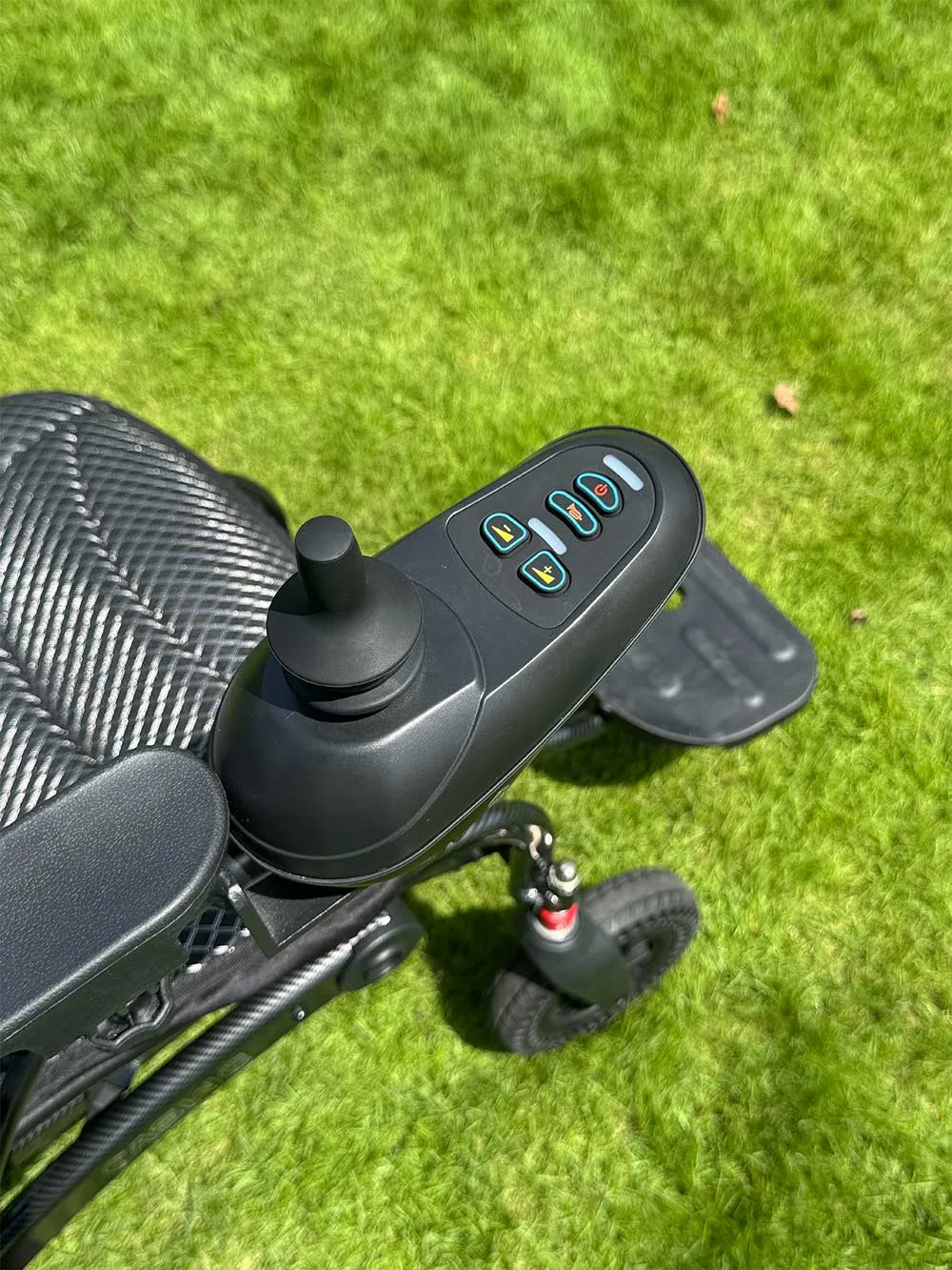 - Smart controller: Den avancerade kontrollmodulen är hjärtat i denna rullstol och erbjuder sömlös kontroll. Den möjliggör enkel på/av, hastighetsjustering och realtidsövervakning av batteriet med en tydlig display. Den har ett horn för säkerhet, vänster- och högerswitchbar drift samt en dedikerad laddningsport. IP66-vattentålig för hållbarhet i alla väder.