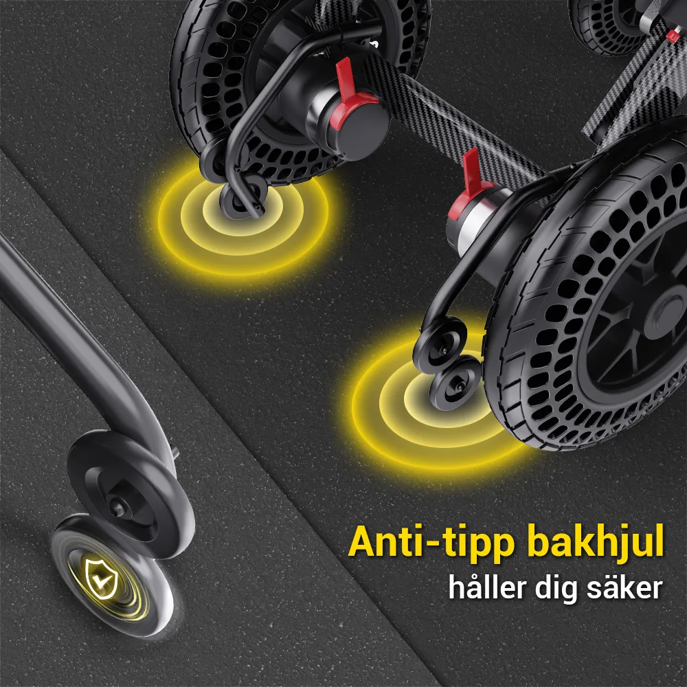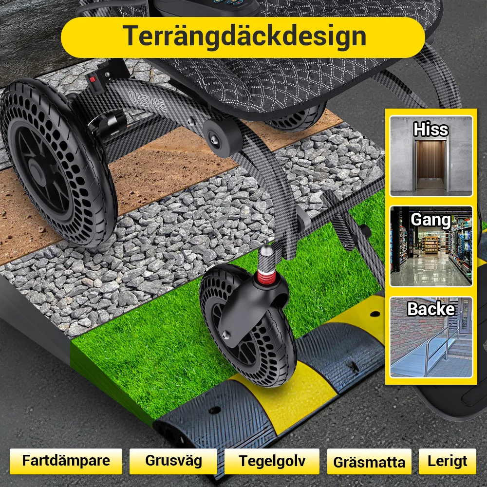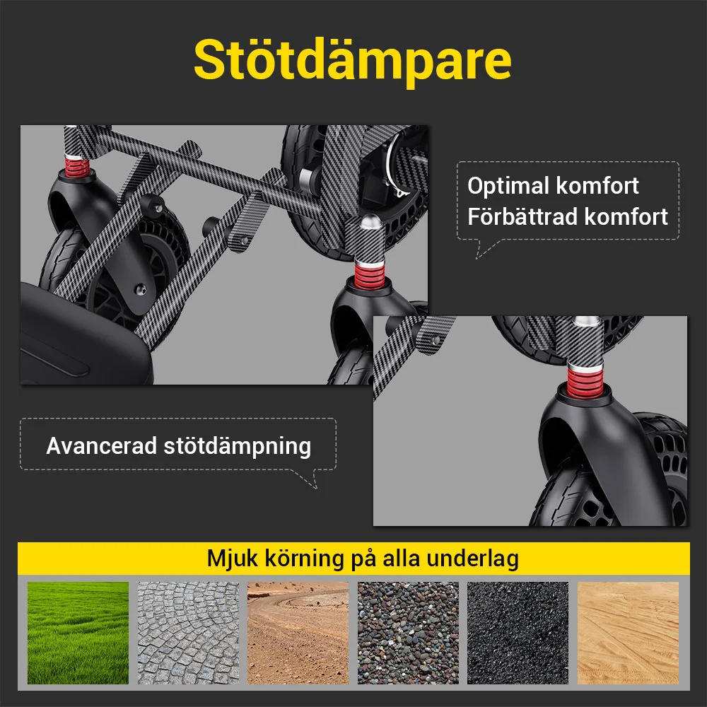 - Komfort-först design: Stötdämpande fjädringssystem i både säte och framhjul säkerställer överlägsen komfort och stöd, även på skumpiga ytor.