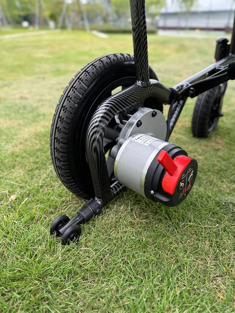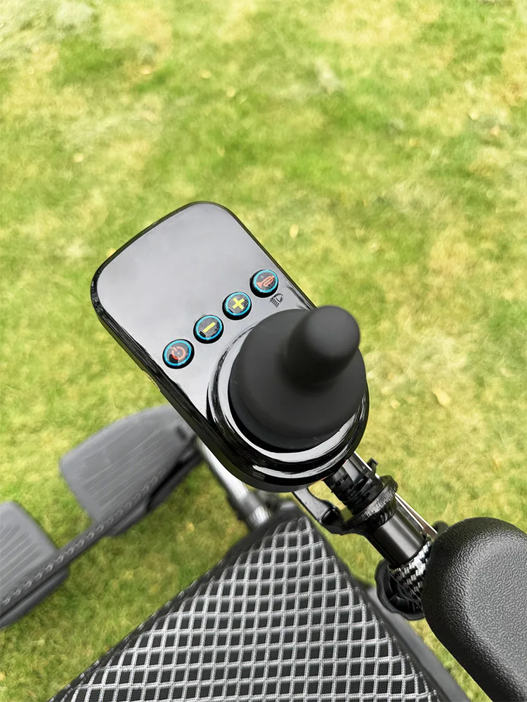 - Smart LCD-kontroller: Den avancerade kontrollmodulen är hjärtat i denna rullstol och erbjuder sömlös kontroll. Den möjliggör enkel av/på, hastighetsjustering och realtidsövervakning av batteriet med en tydlig display. Utrustad med tuta för säkerhet, vänster- och högerswitchbar funktion samt en dedikerad laddningsport. IP66-vattentät för hållbarhet i alla väder.