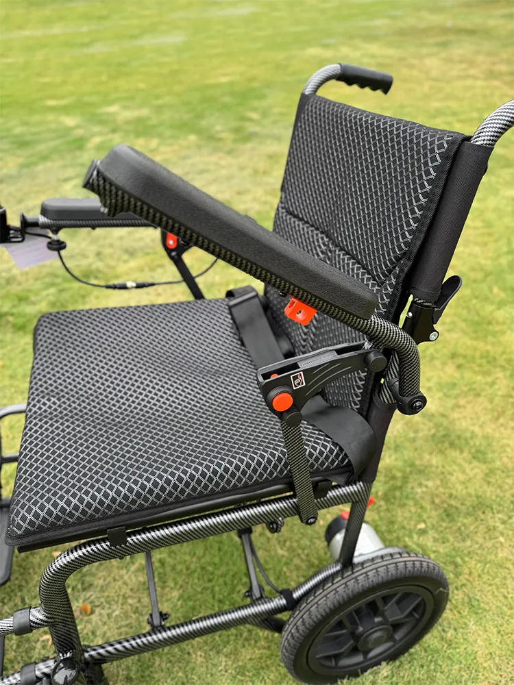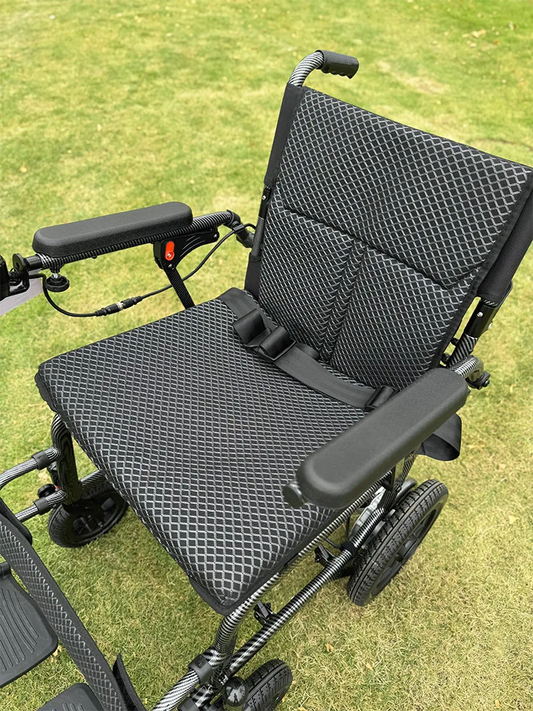 - Omfattande säkerhetsfunktioner: D10 elektrisk rullstol är utrustad med intelligent elektromagnetiskt bromssystem, anti-tip bakhjul, säkerhetsbälte och LED-säkerhetslampor. Vi bryr oss om din säkerhet.